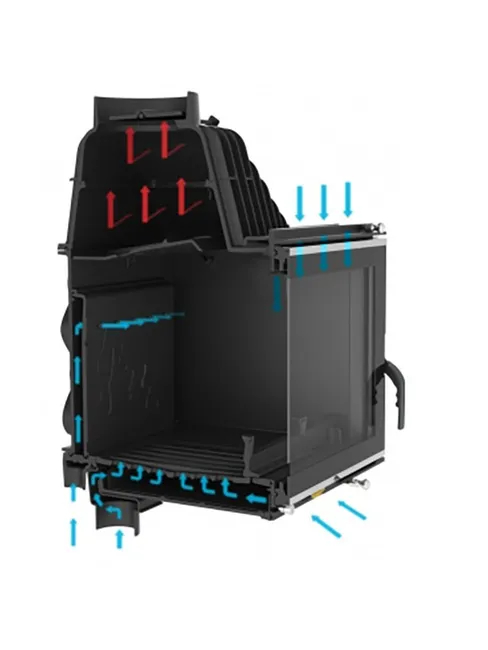 L’insert à bois encastrable W15 ECO combine performance et compacité pour s’adapter parfaitement aux petits et moyens espaces. Avec une puissance de 9,4 kW, il chauffe jusqu’à 94 m² tout en assurant une consommation maîtrisée grâce à son système de post-combustion et son déflecteur en vermiculite.