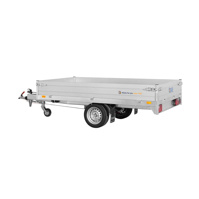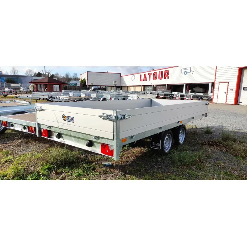 La remorque plateau Saris PL27615015001 possède un châssis entièrement soudé, des ridelles en aluminium double paroi.