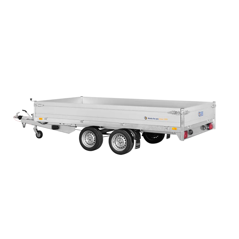 La remorque plateau Saris PL35618427002 possède un châssis entièrement soudé, des ridelles en aluminium double paroi.