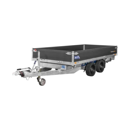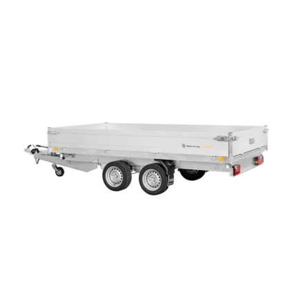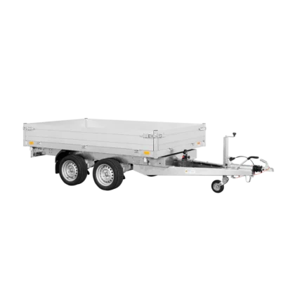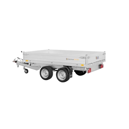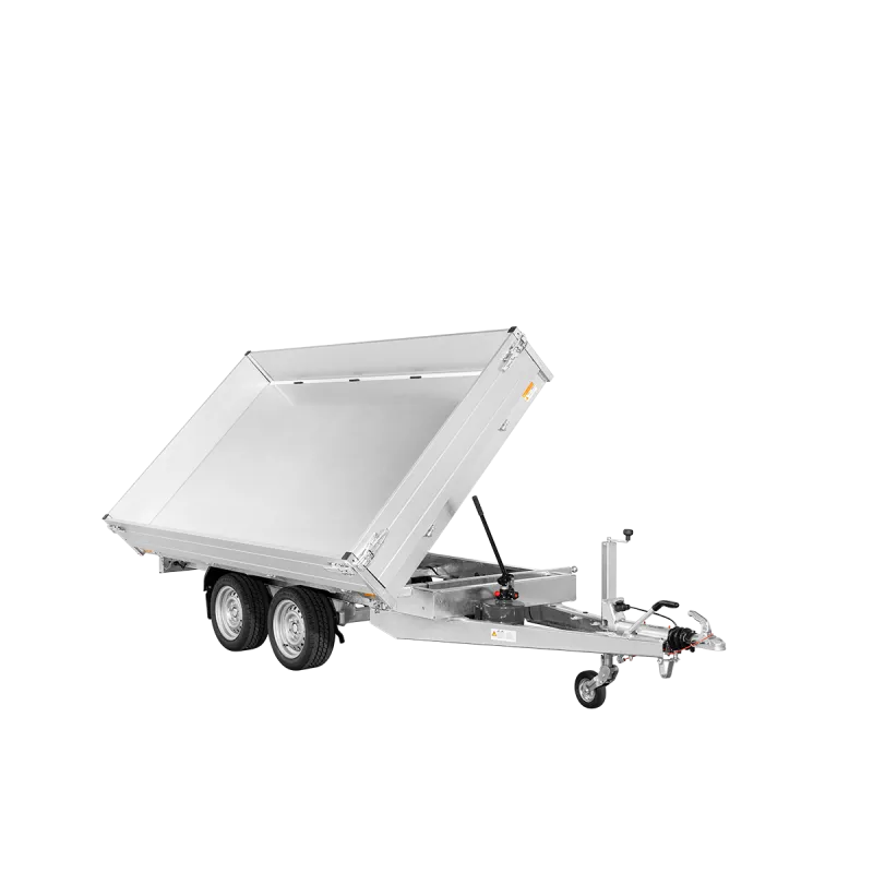 La remorque tribenne SARIS est idéale pour transporter en toute sécurité gravats, déchets de construction, déchets de jardin, sable, pierres et engins.